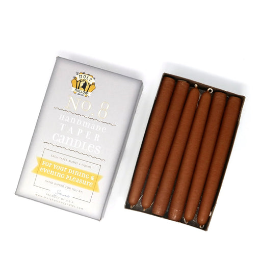 This box of pumpkin / rust candles holds 6 pair of hand-dipped candles by Mole Hollow in Massachusetts using a technique that has been in place sin...