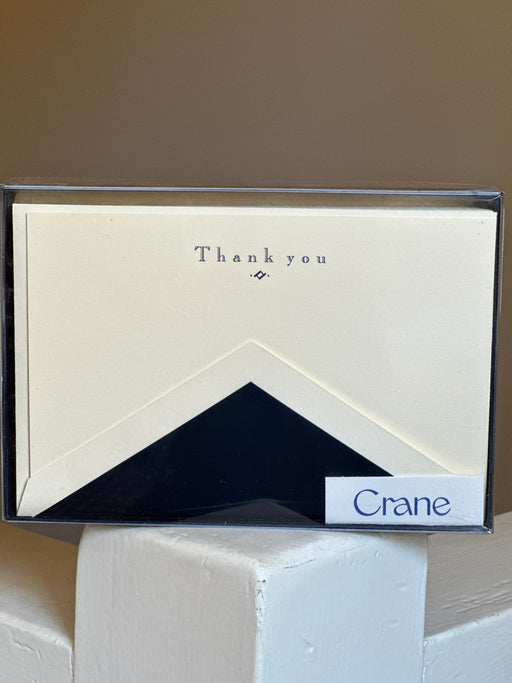 This heavyweight, ecru flat card is made from silky, all-cotton paper and decorated with a classic black foil Thank you. card size 4 1/4" x 6 3/8"...